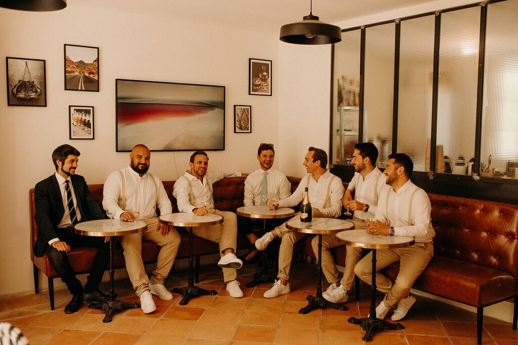 C'est aussi dans espace à la décoration plus masculine que nos mariés et leurs témoins réalisent leur préparation. Photos uniques garanties !